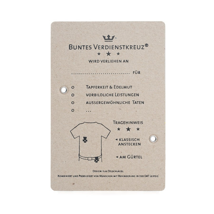 Hergestellt wird das Bunten Verdienstkreuzes aus hochwertigem Filz in der Diakonie am Thonberg Leipzig, einer anerkannten Werkstatt für Menschen mit Behinderung.