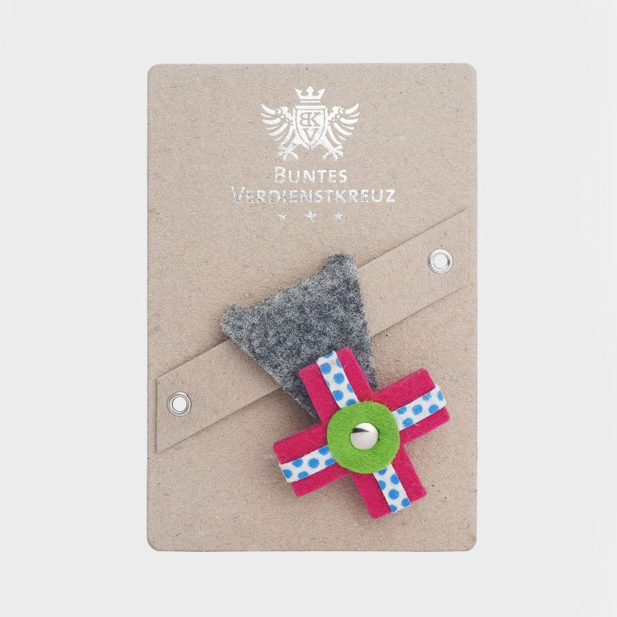 Ein Buntes Verdienstkreuz ist das ideale Dankeschön für alle Personen die einem besonders am Herzen liegen oder für alle die eine besondere Auszeichnung verdient haben. Antonio fürs Ferienhaushüten, Heidi & Harald für den Flughafentransport, Oma Else für die Geldspende oder die nette Nachbarin fürs Blumengießen.